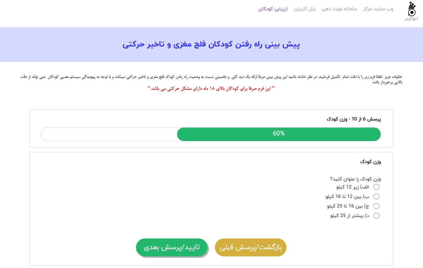 سامانه ارزیابی کودکان مرکز توانبخشی جامع ایران