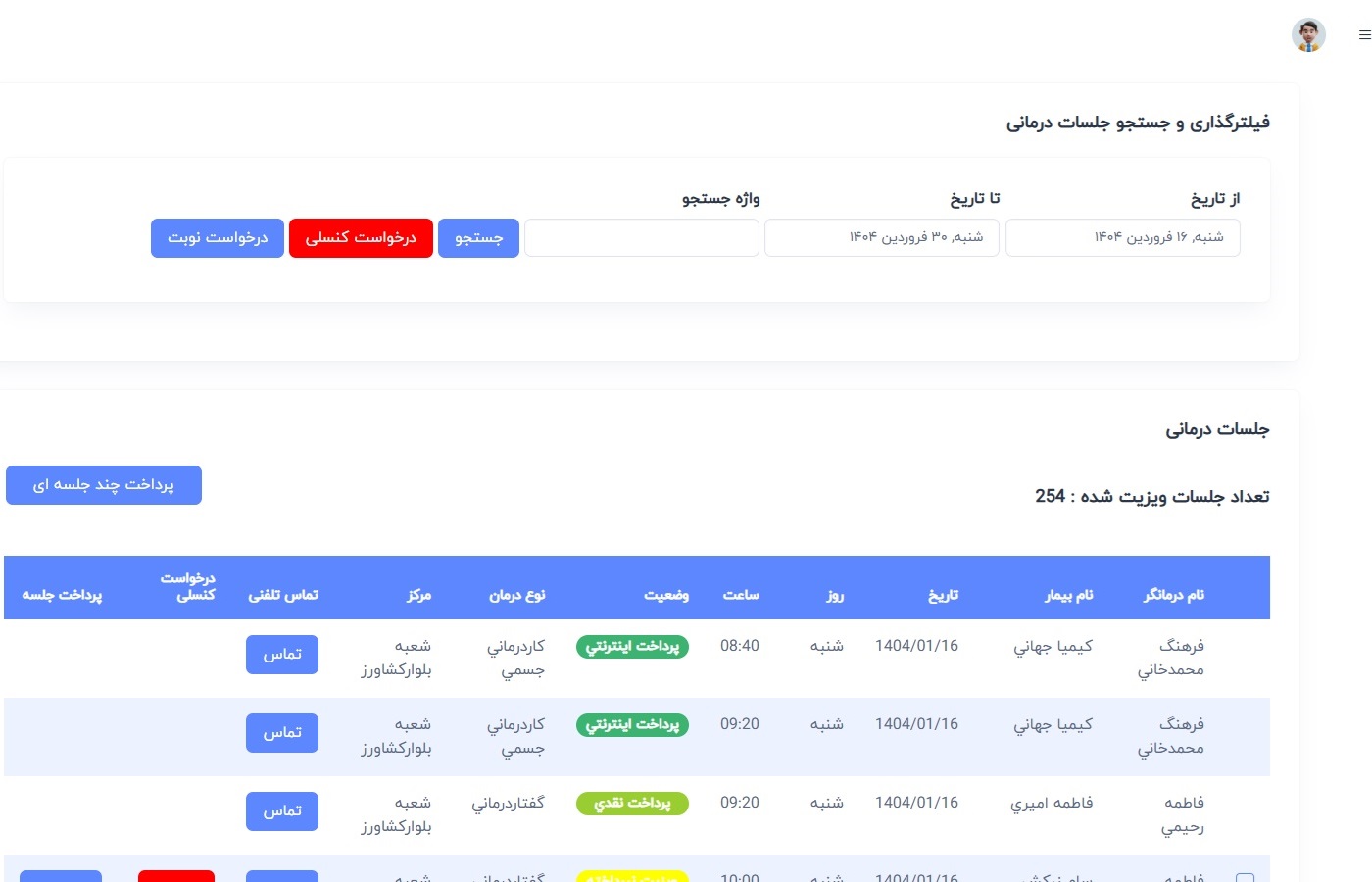 جلسات درمانی هماهنگ شده و انجام شده،سوابق مراجعه جلسات،گزارش پرداخت های مالی،فیش حقوقی
